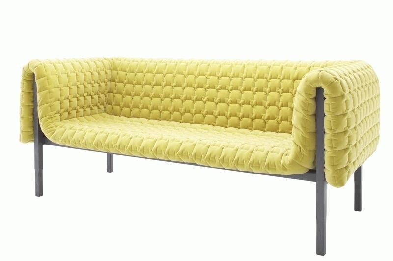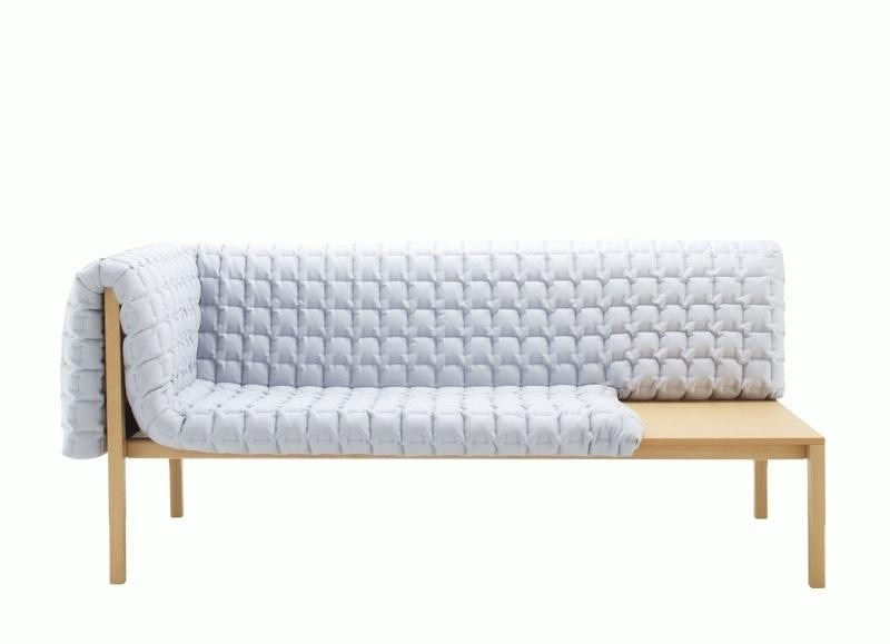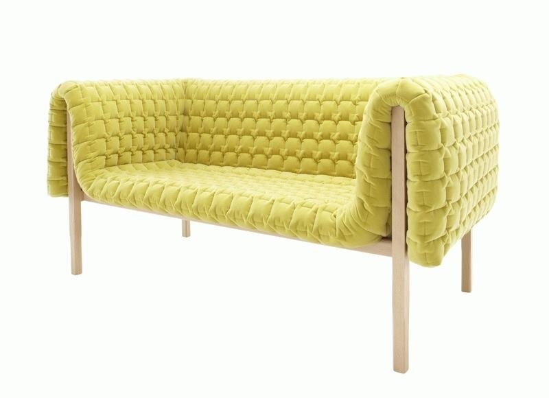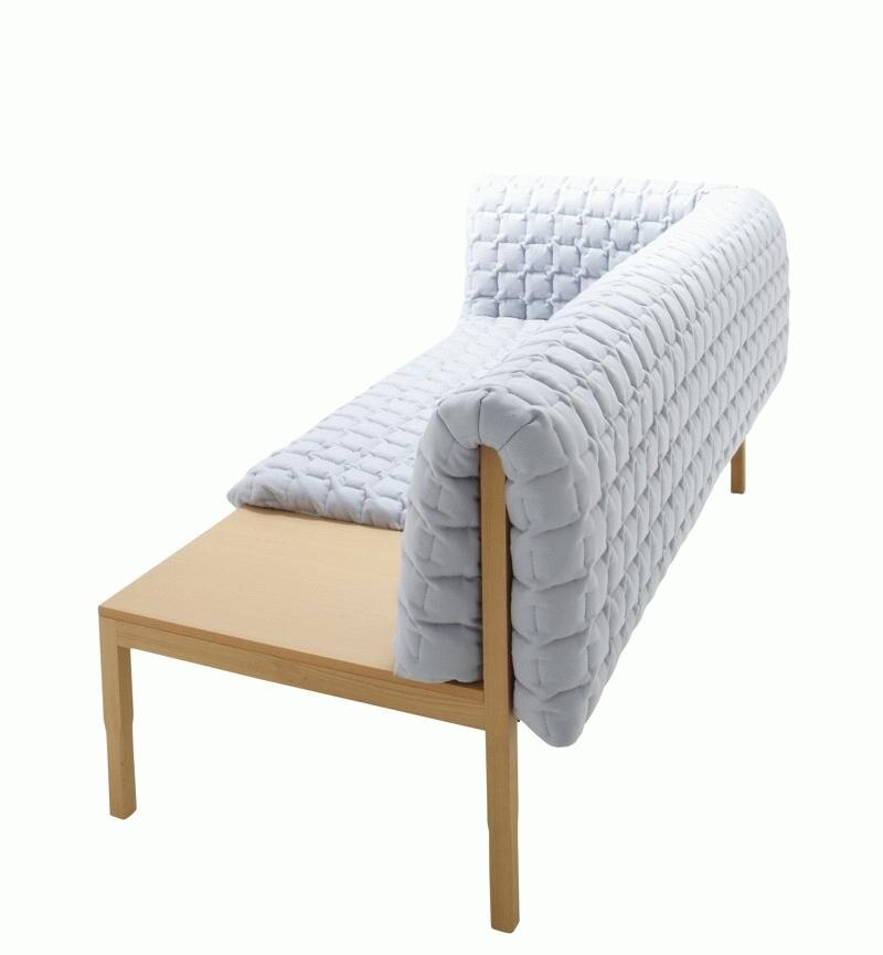 “To design one settee is difficult enough. To design another one for a company for whom you have already designed one - that’s even trickier. After Moël (2007), which belongs to the ‘all-foam’ family of seating, I wanted to take a completely different approach: a settee lifted from the ground by a simple, fine structure which supports a comfortable seat. I was, at the outset, inspired by swing seats, the kind of rocking seats which one brings out in the garden in summertime, made from tubing and fabric, which possess a lightness I like very much. Like them, Ruché combines rigidity and flexibility, with airy looks and sparing use of materials. Ruché’s structure is in solid beech, either stained or natural. I wanted to offer a version in natural beech: natural wood is beautiful, qualitative, authentic; it’s modern, and at the same time restful, for it is one of the rare natural elements which one can have in a living room. The angles of the feet are worked ‘en congé’, which both refines them and protects the grain of the wood from shocks. Upon its slim legs rests a thick mattress with distinctive quilting, a kind of boutis stitch or padding made using a cross- hatching of interrupted seams. Alternately flattened by the stitches then set free, the fabric ‘curls’ in places, giving rise both to its unique appearance and to its name, ‘Ruché’ (a gathered or pleated fabric which serves as decoration on a piece of clothing). The highlights arising from these changes in level are very rich and their shading varies depending on the fabric used. A plain cloth is enriched with reliefs, a velour captures light from every angle... this quilting, simple and finely-worked, was the subject of much research and many trials, at the outset on my little sewing machine at my agency, then in the prototyping shop in Briord, on the seamstresses’ professional-grade machines, and finally there were tests on the programmed sewing robot with which the settees were to be produced. For Ligne Roset, Ruché also brings together the unusual and the traditional. The unusual thing about this piece is its solid wood structure, and the great traditional element: the quilting, the very heart of its savoir-faire. Its rangy uprights and the undulations of its duvet combine to produce a harmonious union or rigorous straight lines and soft, welcoming curves. Slender and fine, Ruché is nonetheless soft and welcoming. Its internal structure, its filling materials and its quilting were brought together and developed with a view to offering great comfort. Since the height of its armrests is the same as that of its back, one can just as easily sit sideways and stretch out one’s legs: as a major refinement, the armrest is mounted on elastic webbing to enable to sitter to lean back in the greatest possible comfort. As well as the 2 and 3-seat versions, footstool and classic 1-arm settee, Ruché is also offered in a 1-arm settee version with integral table surface at the end of its seat. This might accommo- date a tray, books, a lamp, DVD projector... It is a new departure which could, for example, enable a narrow room to enjoy the benefits of a low table with no inconvenient loss of space.” Inga Sempé