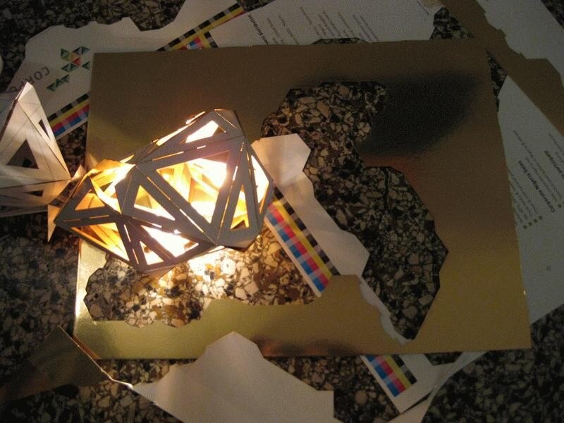 Simply take a tour around the room in your mind, fold and un-fold it, puzzle it and frame your special moments. The known and the unknown are visualized from one same yet different pre-cycled building block. Everyone can play…On the contrary to a Blanc reference point Collective Paper Aesthetics is starting with a print error or print test. Thanks to f-hagemann.de project is Hosting laser engraver on-site to provide a fresh perspective on home-studio craft’s today. Bling Bling Papers were contributed by M- real Consumer Packaging.