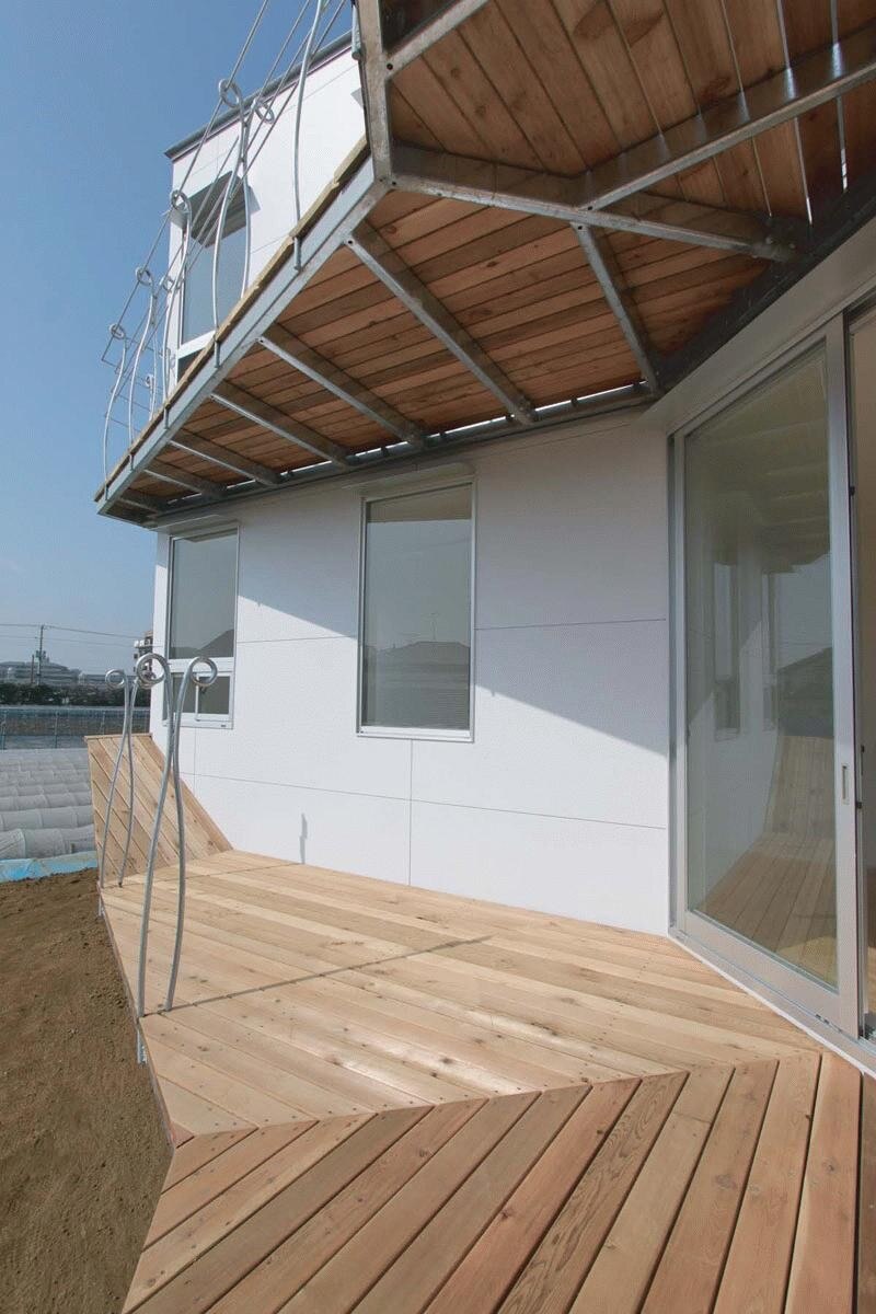 To emphasize the petals of the massing, a deck terrace has been added that stretches between the units that expands the interior to the exterior. The apartment windows are oriented in such a way that they selectively edit the views of the surrounding suburban landscape highlighting the rural aspects of the site.