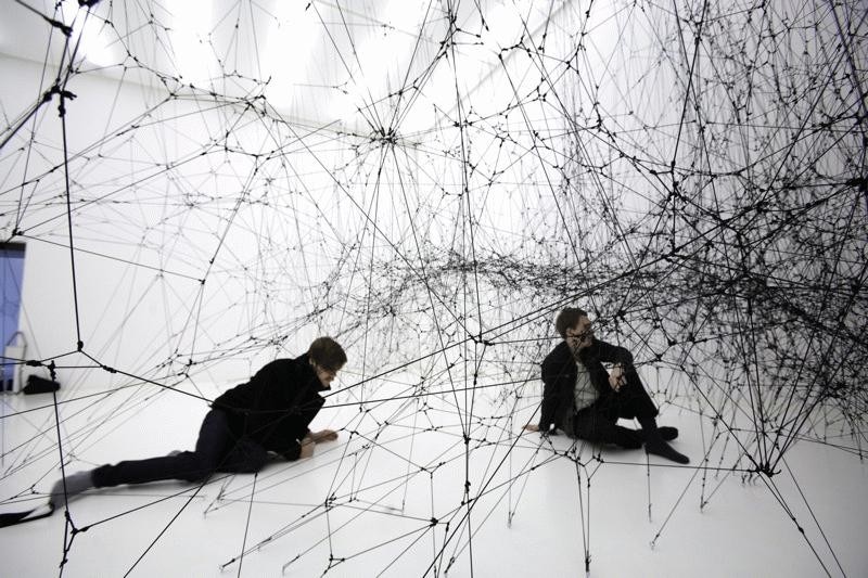 In collaboration with arachnologists, astrophysicists, architects and engineers, Saraceno has spent two years developing 14 Billion (Working Title). His point of departure for this new work was science’s use of spiders’ webs when describing the origin and structure of the universe. The resulting installation spans an enormous 400 cubic metres, is composed of 8000 black strings connected by over 23,000 individually tied knots and depicts a monstrous Black Widow spider’s web. At BALTIC the work will be housed within a specially created white cube space located in the Level 2 gallery enabling visitors to walk through and around the installation.