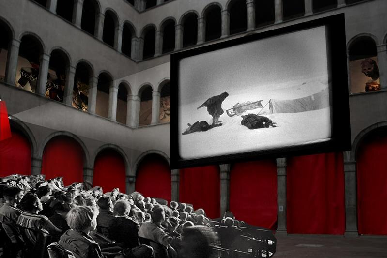 Proposal, courtyard as cinema, il Fondaco dei Tedeschi, Venice, Italy. Copyright OMA.