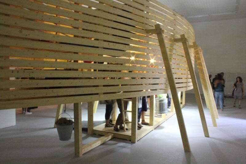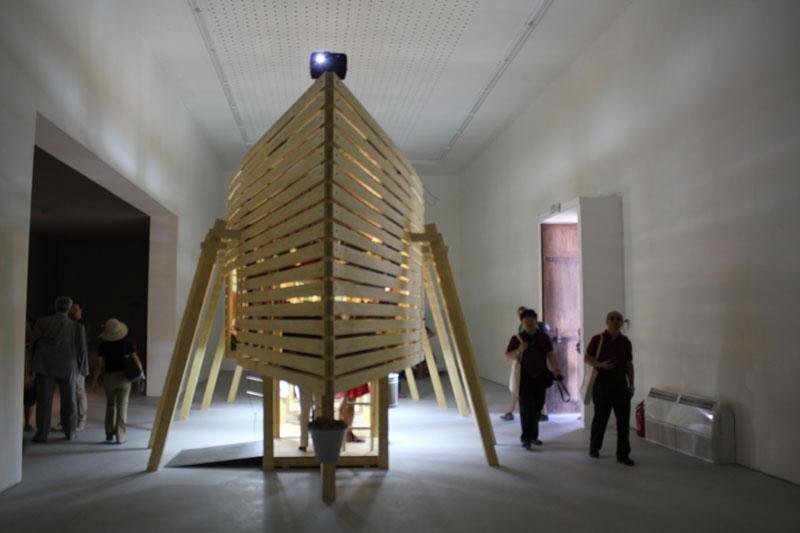 La Grecia si presenta alla Biennale con un’Arca. Una struttura in legno lunga 12m, alta 1,70m e larga 3,30m. Carica di semi da salvare, l’arca è una “reminiscenza dell’antico significato di salvazione, ma non nell’accezione biblica” – spiega l’architetto Phoebe Giannisi, curatrice del padiglione insieme al collega antropologo Zissis Kotionis, dell’Università di Thessalia. L’idea gerarchica di paternità è sostituita da quella di networking: il progetto è stato sviluppato da un ampio gruppo di persone, tra cui artisti, biologi, architetti e studenti che insieme hanno raccolto semi, piante e frutti provenienti da tutta la Grecia per salvarli dall’estinzione che le nuove politiche agricole planetarie prospettano irrimediabilmente. Si tratta di semi raccolti con metodo e pazienza nei piccoli villaggi rurali che attorniano le grandi città greche, “semi veri, prolifici, non i semi sterili che vengono venduti ai contadini dalla multinazionali e che ci stanno assoggettando imponendoci la dipendenza agricola” – sottolinea Maria Papadimitriu, una degli artisti coinvolti nella realizzazione del padiglione.