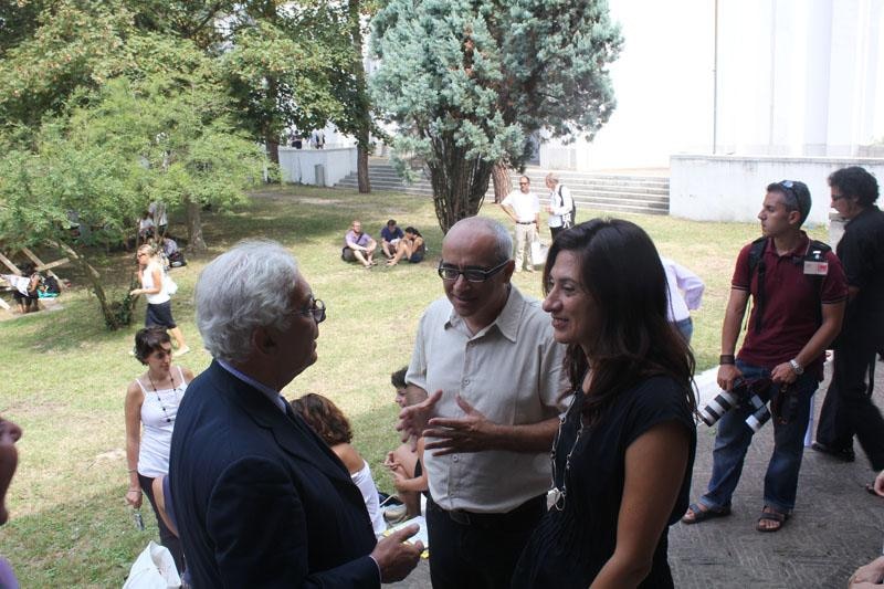 Images: The President of the Biennale di Venezia, Paolo Baratta with the curators Phoebe Giannisi and Zissis Kotionis