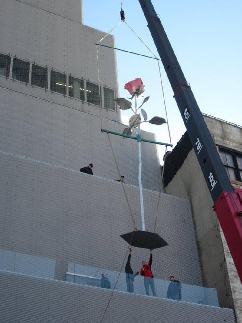 Rose II was originally created in 1993 and reprised in 2007. It is the culmination of a practice that explores the way we perceive objects and images through our senses; the implications of scale; and the integration of architecture, nature, and mass culture. Although Genzken is a longtime resident of Berlin, she has had a forty-year love affair with New York City, which began when she first visited as a student. Looking back on that experience, she has commented, “To me, New York had a direct link with sculpture… (It) is a city of incredible stability and solidity.” The installation of Rose II can be seen as a tribute to a place Genzken continues to love.