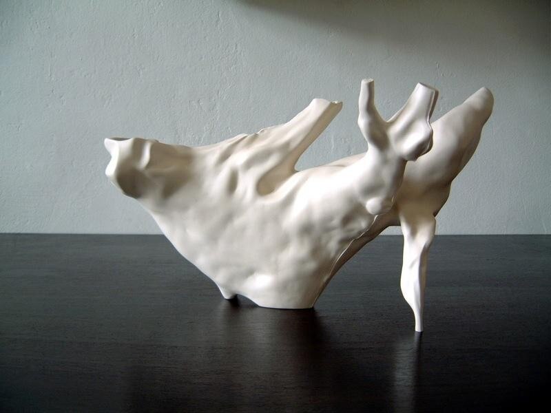 The young talents, even if they are made of the same "compost" as their elders, also belong to their own time, a generation which rubbed itself, and was even involved in other disciplines of creation, either by their education, or simply as artists in search of a material answering their expectations. Today, proud to be firmly rooted in a history of ceramic at last restored to favour as a fully recognised artistic activity, the young artists/ceramists selected for this exhibition find their inspiration outside the very field of ceramics. Dawn Youll's familiar metaphors appear then as a 3D painting with shine and matt effects due to chosen enamels. Akashi Murakami presents a fantasy landscape populated with vegetables which she corrects with her moldings.