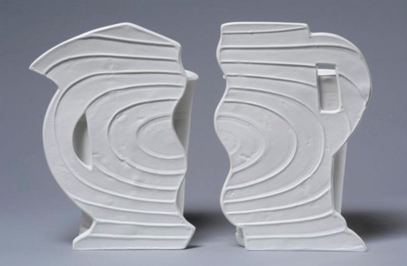 Well-known ceramists such as Kristin McKirdy, Ursula Morley Price, Nicholas Rena or even Betty Woodman, with their technical skills, have brought to this ancestral material a specific approach, and found a way to go beyond the limits. The traditional practice had indeed locked the ceramic into an utilitarian and decorative context, even if the 1950’s generation had introduced important changes. But it is through the work of these confirmed ceramists that we discover the immensely creative potential of the clay, allowing these artists to be more abstract, to free themselves from ceramic in order to better come back to it. For example, Nicholas Rena’s pieces move away from their original purpose to turn into ‘silence objects’. As for Kristin McKirdy, she does not stop questioning, according to Pierre Staudenmeyer "through a relatively reduced register of forms, the presence of a material, the depiction of a technique or the experiment of a use or rather a non-use of the jar, the earth, the art of the ceramic".