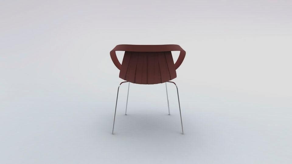 Inspired by the characteristics of liquid wood, we decided to create a chair that references the genre of light, graceful, bent wood frame chairs but would be impossible to make in any other way than by injection moulding, hence the name "impossible wood".
