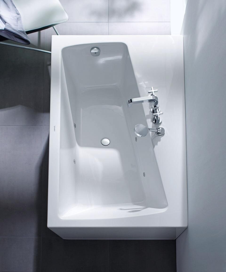 The Paiova bathtub with its distinctive trapezoidal shape has evolved into a full-blown success story since its launch in 2004. The idea from EOOS involves two the bathers relaxing alongside one another, rather than facing one another. With their heads nestling in the comfortable neck rest, this is a comfortable way to share bathing pleasures. Advanced acrylic technology has enabled bathroom manufacturer Duravit to cut the signature trapezoidal form of this model out of a rectangular monobloc.