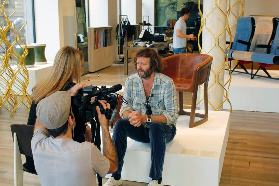 When Michael Young was invited to delve into the company archives, he jumped at the chance, having fallen in love with the leather seats produced by Trussardi for Alitalia in the 1990s. With huge respect for Italian design culture and a longing to design an iconic product that would both express Italian production quality and the technological innovation typical of the Asian world, Young designed the 100 Collection, seating, tables, stools and coffee tables in plastic or wood and hand-covered with Trussardi leather.