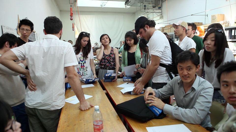 Total event coverage in real time – thanks to 34 students from the Domus Academy Design Master course and ten smartphones. Throughout Design Week, ten groups of students roamed Milan visiting strategic Fuorisalone locations and Furniture Fair stands, attending press conferences, presentations and parties, all the while using their phones to capture pictures and comments, interview major figures, and record the most innovative products and fascinating exhibition designs. This volume of material was posted in real time on Twitter and then onto the interactive Media Wall installed by Domus at via Tortona 31.