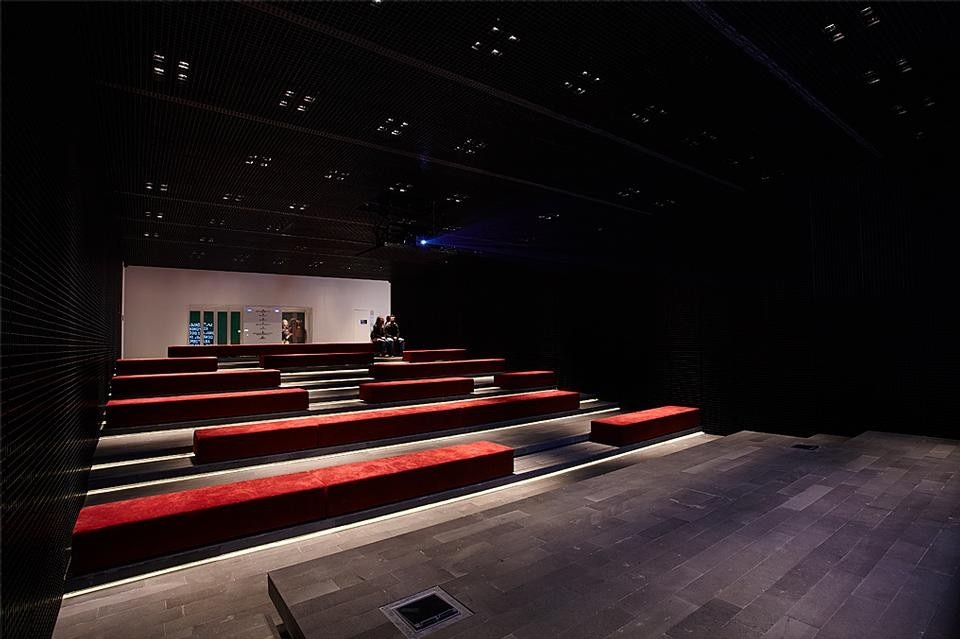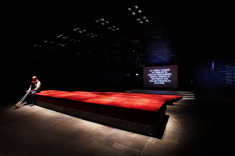 The Walk-in Cinema inside the SALT Beyoglu building sits on a byway connected to Istiklal Street, one of the most important pedestrian streets of Istanbul. As the name also suggests, this is an open space which connects to the Istiklal street via the ground area of the building. The partition-less space signifies the openness to any idea that will be shared within. In this context, the institution's major aim is to become a flexible space open to any kind of intervention is further realized in the cinema space.
