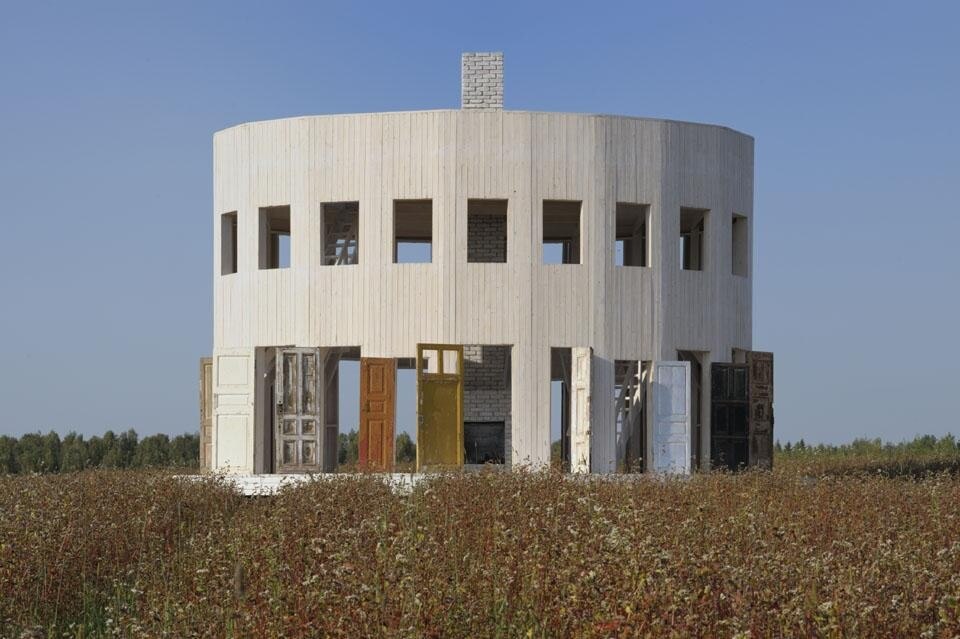 Alexander Brodsky is the most prominent proponent of an architectural and artistic position that has been working for decades on the crossover between architecture and art, transcending the boundaries between these two disciplines on a daily basis. His architectural and artistic manifestations provide a testimonial to the search for a different Russian identity. In his projects—which are dominated by clear simplicity and theatrical power, never kitsch and never outdated—he often combines sharp criticism of the system coupled with subtle irony. Brodsky's characteristic "Humanism of the insignificant" (Alexei Muratov) presents itself with restraint in his architectural vocabulary when he visibly inserts used or old items into his work. A key example for this practise is the Vodka Pavilion, completed for a cultural festival in 2003, which is constructed entirely of the window frames from a demolished factory and was intended to be dedicated exclusively to the ritual of drinking vodka.