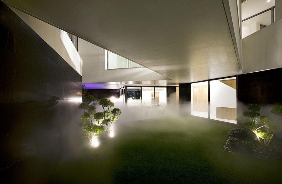 In this case we had only one street-facing facade, and only from there could one look onto the horizon without being seen. We have placed more public activities on the ground floor, where as you enter, you find a guest living area that is away from the other rooms. On the other side, after a circulation buffer, you find access to a family living area that connects the backyard with the central garden.