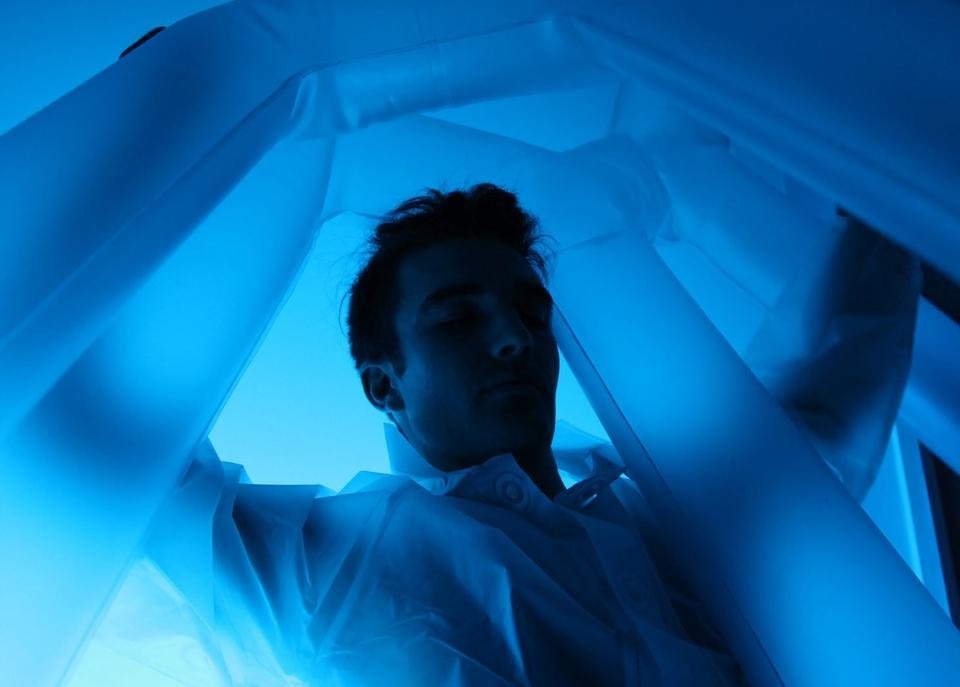 The installation evokes a pharmaceutical-cultural landscape by constructing props meant to represent the molecules responsible for producing a drug's desired effect.