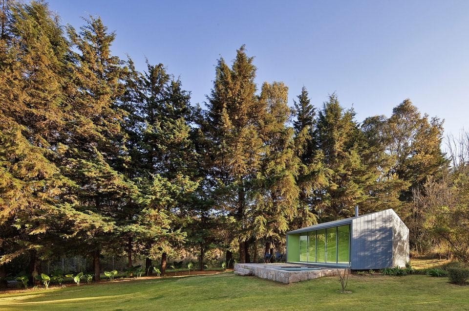 The Pavilion is made in relation to architectural form as well as to the sculptural and visual senses. In its sitting, this pavilion is deliberately positioned in a large plot of land, following the path of an existing pine tree alley.