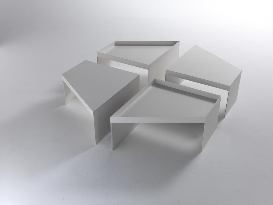 Italian designer Francesco Rota continues his relationship with furniture company Lema, and on the occasion of Salone del Mobile 2012 will launch Combo, a versatile set of tables. Made of four trapezoidal components in HPL, the white tables allow for different combinations.