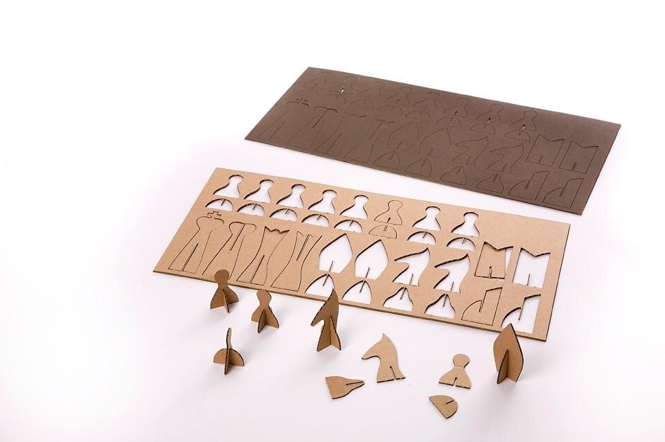 The laser-cut pieces are comprised of two interlocking sections, cutting down on production costs through the manual assembly that players undertake, and easily transforming a flat surface into a stylised set.