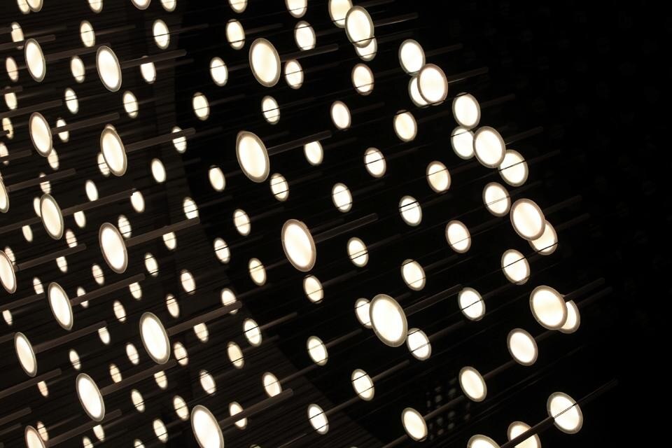 Designer Thierry Gaugain has brought his I.Rain lamp to the exhibition, in which light points hang on fine threads of different lengths to form a light, flimsy mass. Elena Ferrari