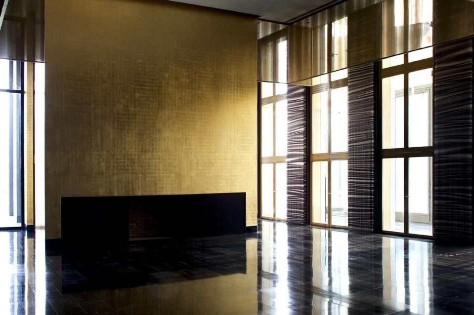On the northern side, a large glass veil unfurls in a soft golden wave: bioclimatic sensitivity meets haute couture. To the south, the Feng Shui tradition finds full expression in the reception rooms designed around a central light well opening onto a courtyard illustrating five elements. The marble evokes a landscape and the last rays of the setting sun; nature is brought inside. The various filters of the façade, with its gallery and terrace, suffuse the atmosphere with a soft light.