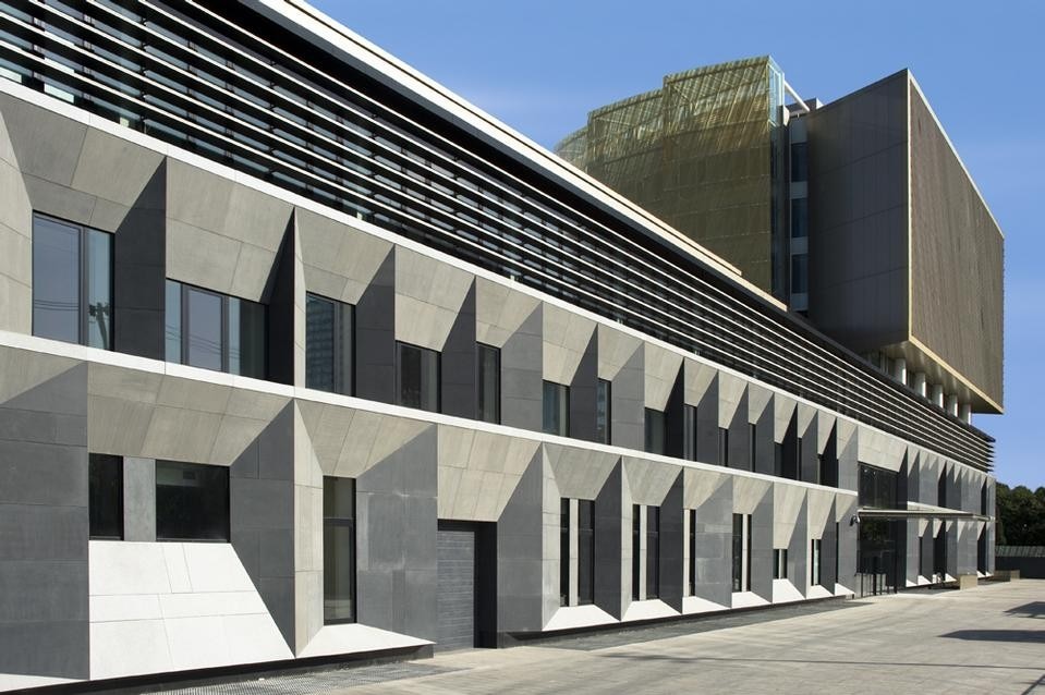Services and occupation started in Autumn 2011. The 20,000 square metre building features a garden at its heart, and consists of a Chancellery, Consulate, diplomatic residence and private apartments of the Ambassador. Alain Sarfati's site-specific, functional approach allowed for a bioclimatic design, in a constant interplay between the indoors and outsdoors, where Feng Shui played an important part.