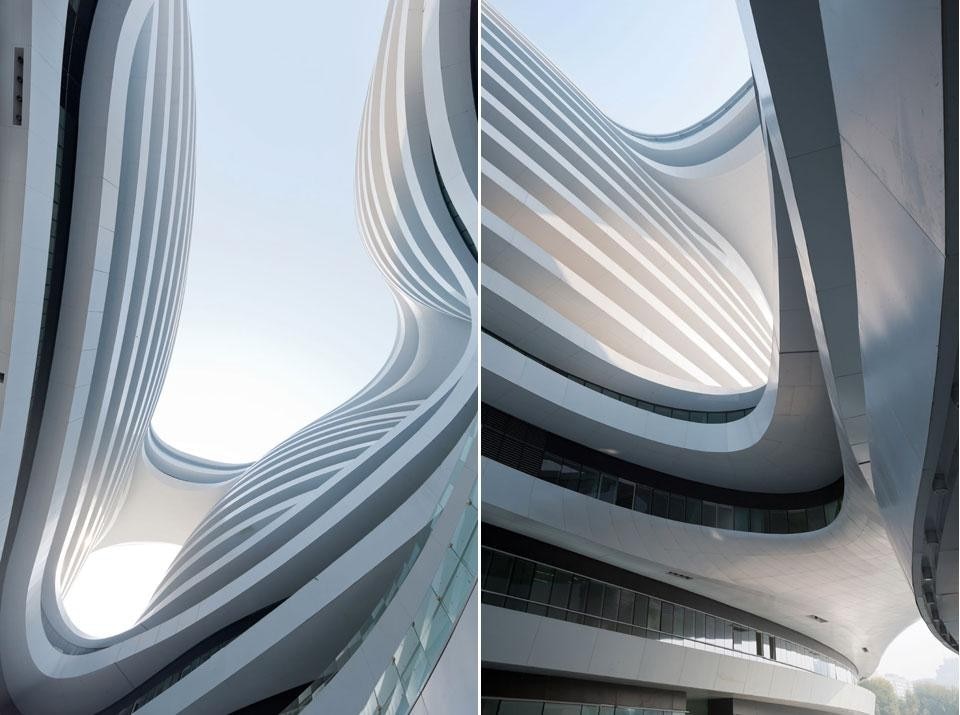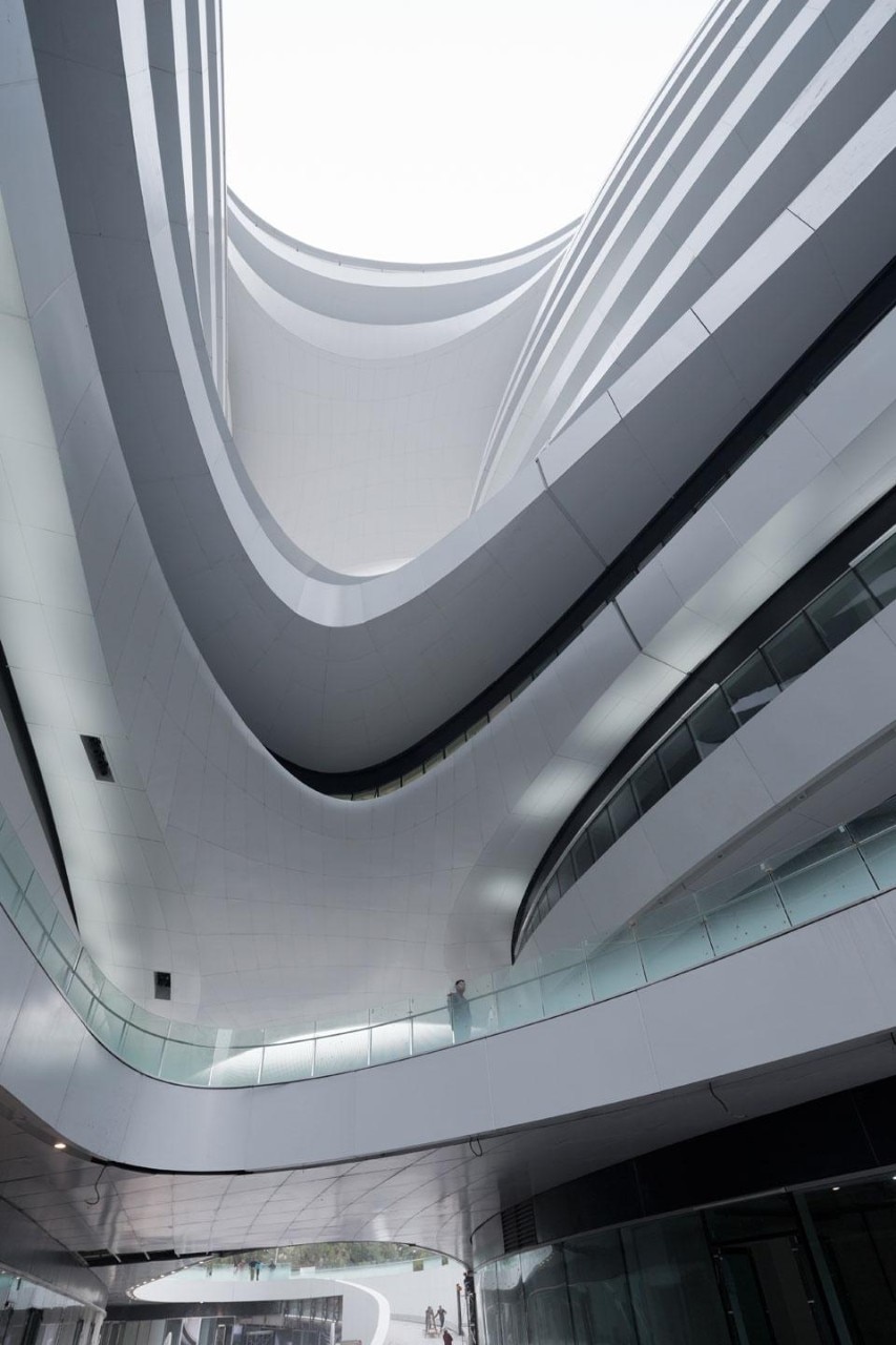 "The great interior courts of the project are a reflection of traditional Chinese architecture where courtyards create an internal world of continuous open spaces," the architects point out. "Here, the architecture is no longer composed of rigid blocks, but instead comprised of volumes which generate a deep sense of immersion and envelopment. As users enter deeper into the building, they discover intimate spaces that follow the same coherent formal logic of continuous curvelinearity."