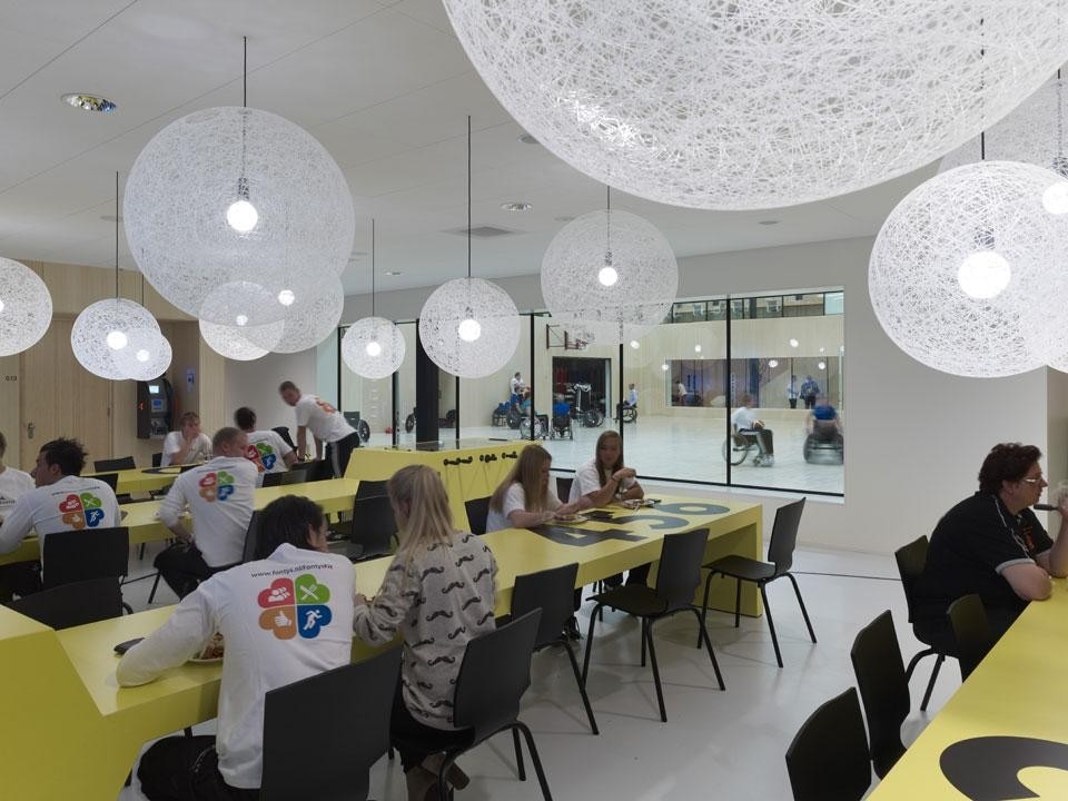 The sports complex's logistics provide the maximum of opportunities for cross disciplinary interaction between sports and education. Simultaneously, sport and education are logistically separated. The teaching functions can be sealed off so that only the sports halls are accessible, for example at sporting events or sports association gatherings.