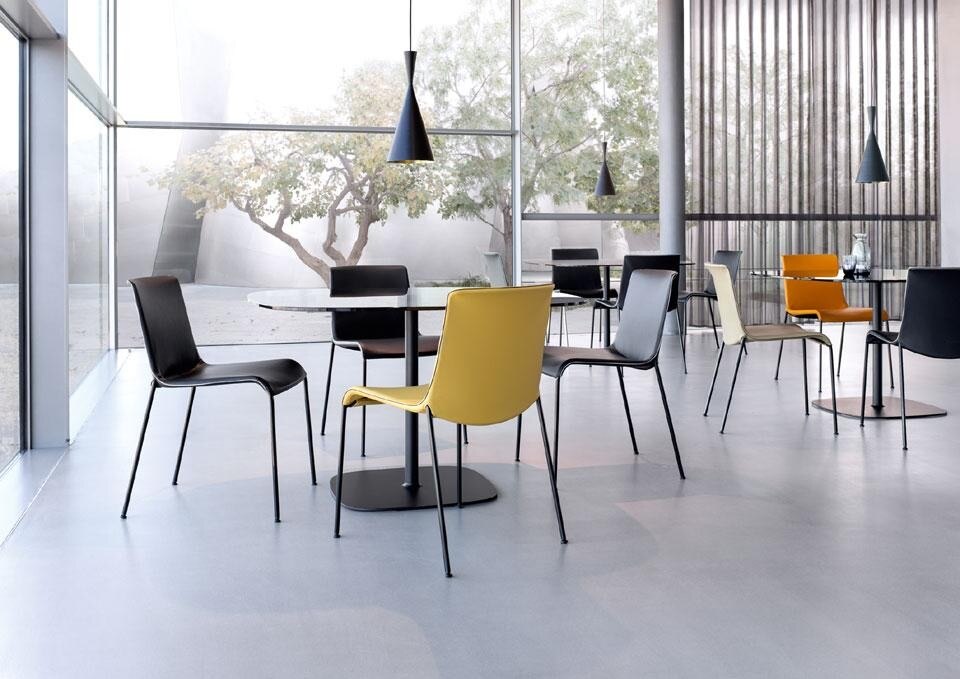Liz features versions with and without armrests, in order to individualise comfort. The chair also has a removable cover, and the variant with an armrest can be stacked.
