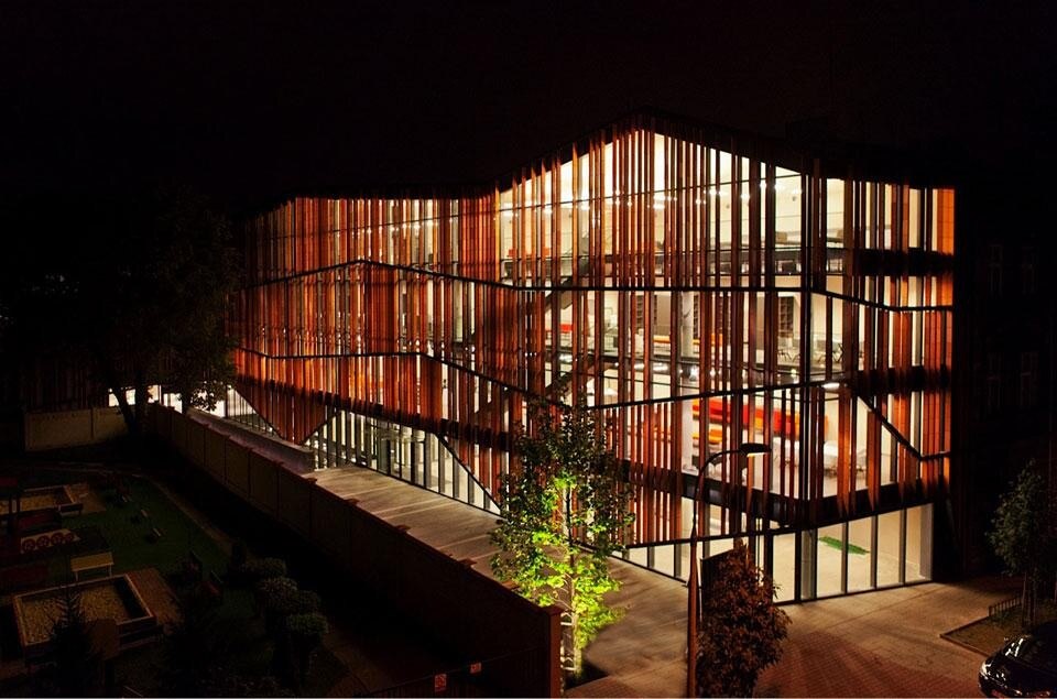 "The form of the building is a contextual game between mimesis and the abstraction", states architect Krzysztof Ingarden. "In practice, this means that the building is by no means a simulacrum of the context, but rather draws inspiration from the code of contextual forms by making references to the geometry of the roofs and tissue of the neighbouring structures applied for the abstract geometrical compositions of the façades."