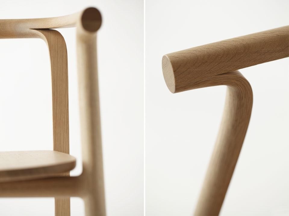 The designers sought to work rationally with the material, keeping the original thickness of larger pieces of wood for strength, and using thinner pieces for more delicate parts of the furniture. "We approached the wood gently," Nendo states, "going with the grain so that the wood would retain its original pliancy."