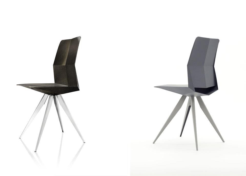 The R18 Ultra Chair's legs are made of folded sheet aluminum, welded by an industrial robot using a cold metal transfer process. The seat shell is fabricated from the latest carbon composite materials: a combination of carbon micro-sandwich and carbon rubber composites extrapolated directly from components of the racecar.