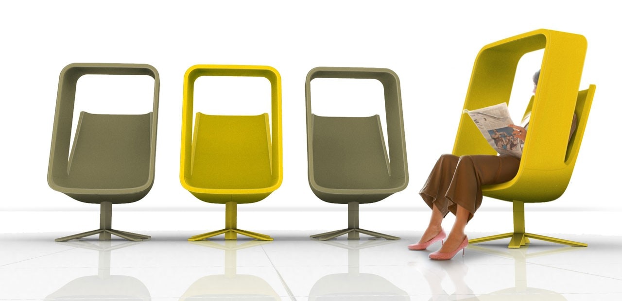 Suitable for both public and private spaces, the Windowseat is designed as a comfortable refuge from the hustle and bustle of lobbies, airports or busy office environments. By taking architectural elements (walls and ceiling) and applying them to a chair, we are exploring the idea of sub-architectural space, creating a room-within-a-room complete with its own unique perspective.