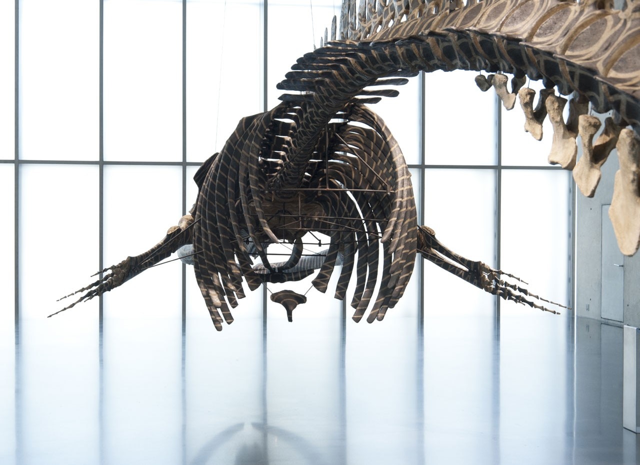 Following this process lasting three months, Orozco had the Dark Wave skeleton completely covered with dynamic graphite drawings. The skeleton, suspended by steel cables, is reminiscent of an enormous mobile and offers visitors to the Kunsthaus the unique opportunity to encounter an enormous giant of the ocean at eye level. In this work, Gabriel Orozco has demonstrated the elementary power of nature, whilst also referencing ancient myths and biblical narratives.