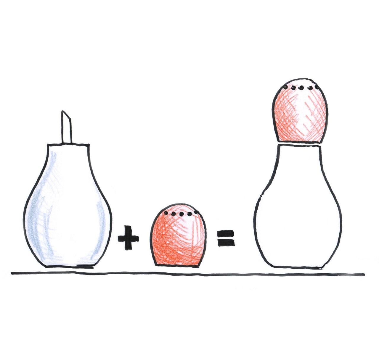The cap of the glass cruet incorporates a salt shaker made of transparent coloured acrylic, available in the transparent red version. The well-balanced cruet guarantees safe gripping coupled with excellent ergonomics, while its compact dimensions make it easy to store. The refined solution of the high-quality plastic cap and practical spill-proof spout make this product functionally complete and aesthetically appealing. Moreover, Matrioska produce by Fratelli Guzzini can also be used to contain vinegar and pepper.