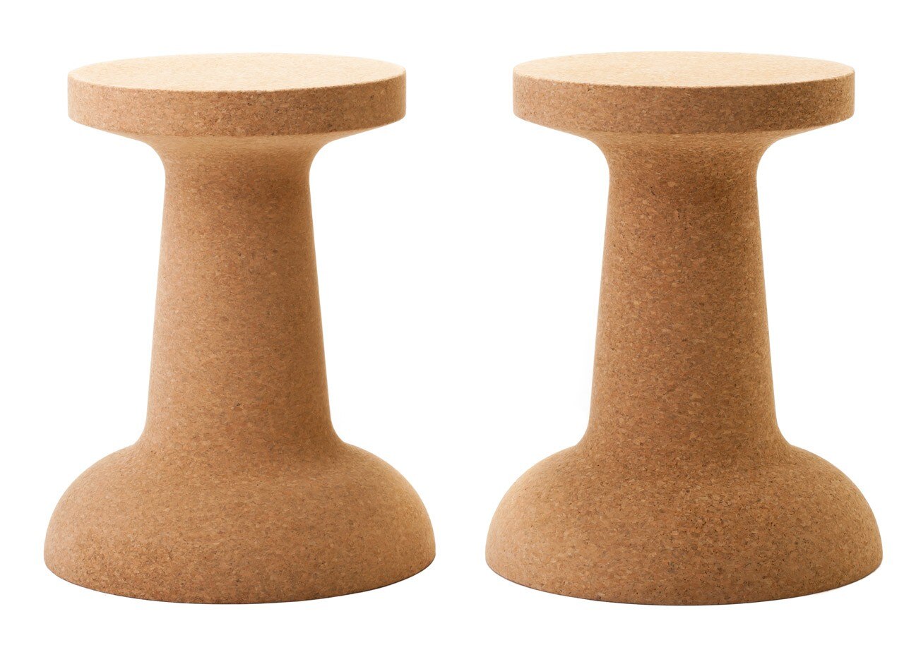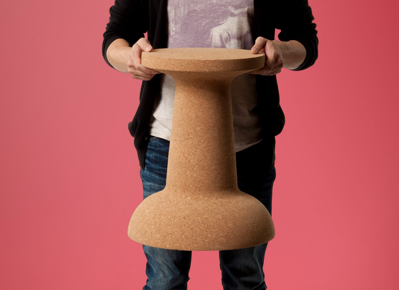 Characterised by an oversize familiar shape and by the warmness of natural cork, Pushpin can be used both ways up: you can sit on the smaller surface or flip over to use it as a coffee- or side-table.