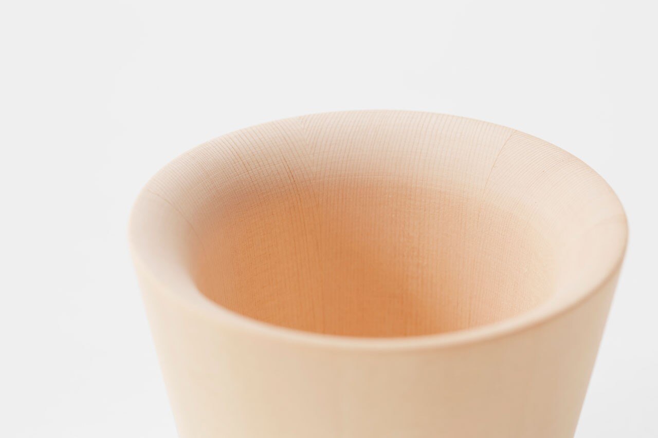 To soften the hoop’s metallic gleam, we sandblasted it to a matte texture then coloured it with a powdered paint, developing another new technique. The pieces are made from a combination of Japanese cypress (hinoki), the traditional material for buckets, and Jindai Cedar, a rare, darker wood uncovered from having been buried in the earth for more than 2,000 years. Nendo treated both woods with urethane to keep warping from ultraviolet rays, dirt and moisture to a minimum. A collection that combines old and new techniques to bring out the best in its materials.