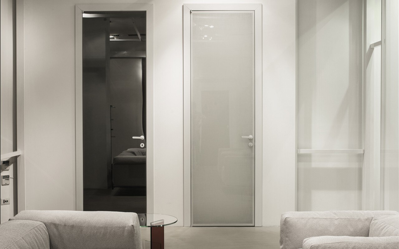 Glas Italia spotlights a collection of doors and partitions developed through stylistic continuity, a proposal standing out for its formal elegance, synthesis and versatility. The use of advanced technologies in the glass manufacturing process and surface treatment and the employment of innovative materials leads to achieving a wide range of glass covering with multiple aesthetic configurations.