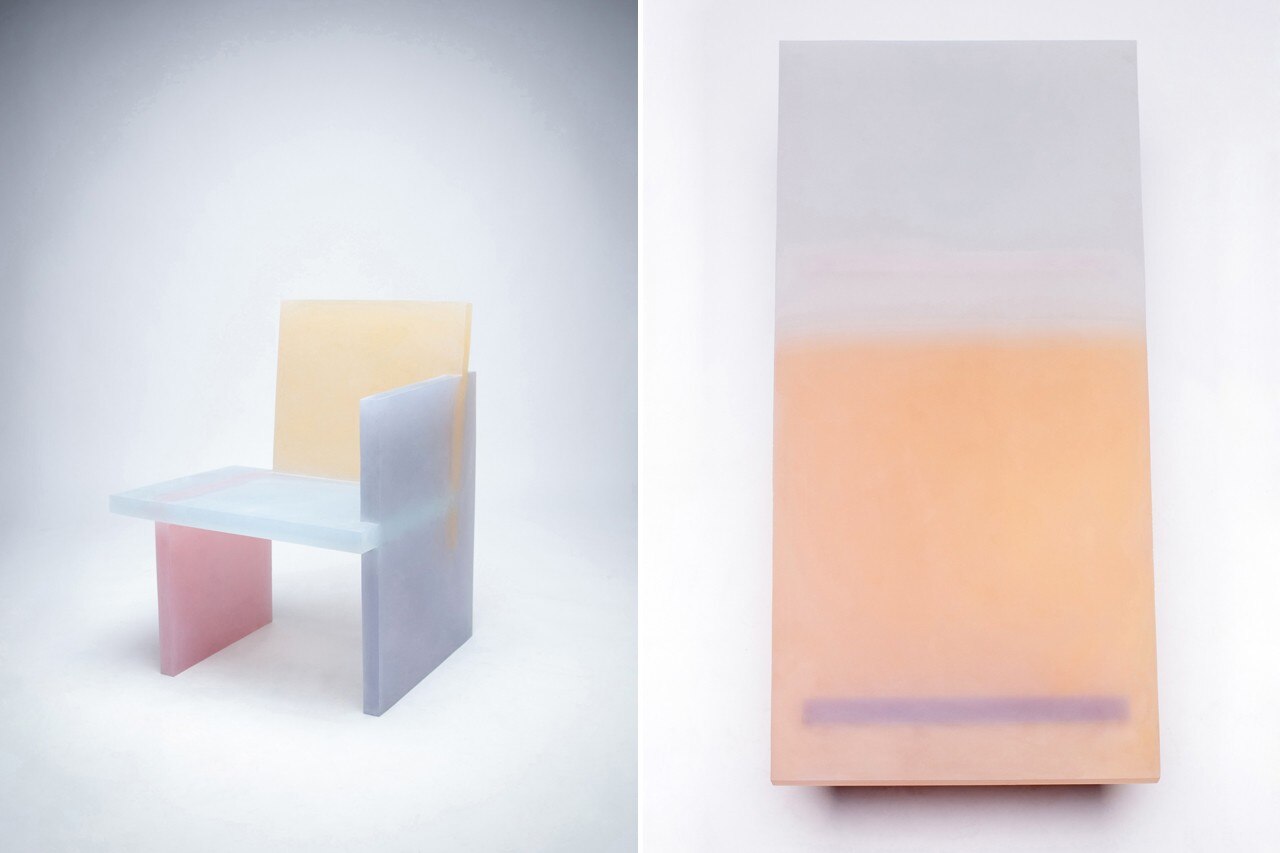 Korean designer Wonmin Park exhibited at D3 Contest at Imm Cologne Haze Series, a collection of table and chairs in light coloured resin.