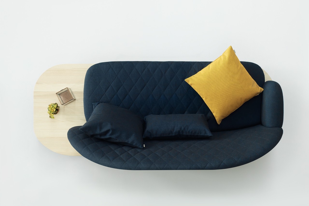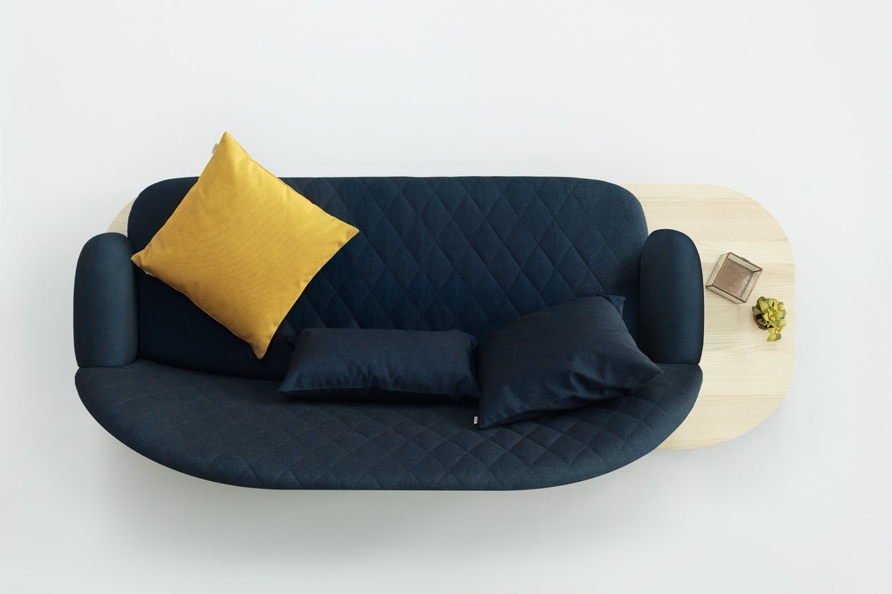 The integrated side table opens up and becomes a bridge between the piece of furniture and the rest of the room. A surface for a still life, a book, plants or whatever you choose to have close at hand.