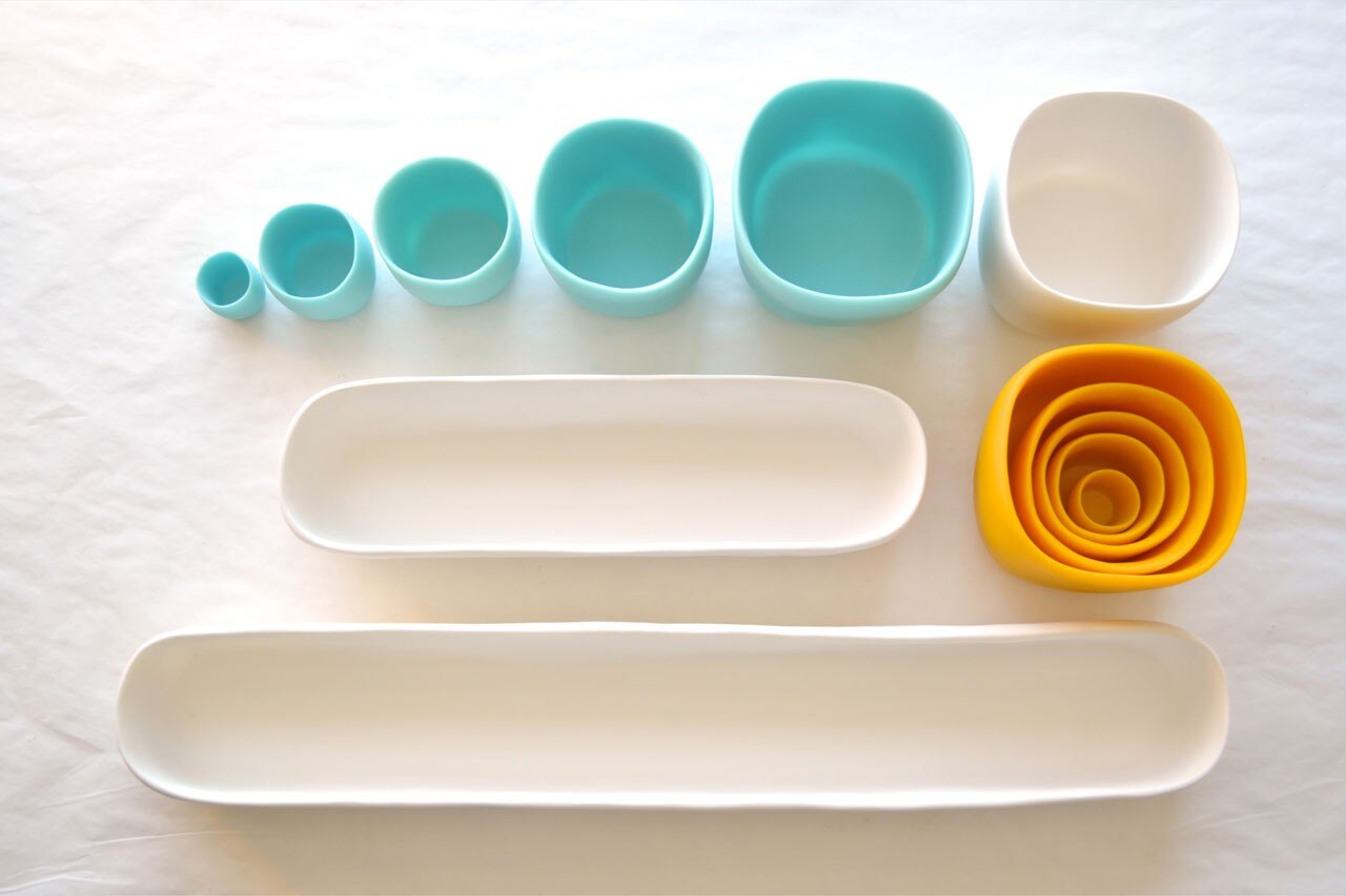 The pieces in the collection are designed and hand sculpted: when the clay design is completed, hand-made molds are created for each object.