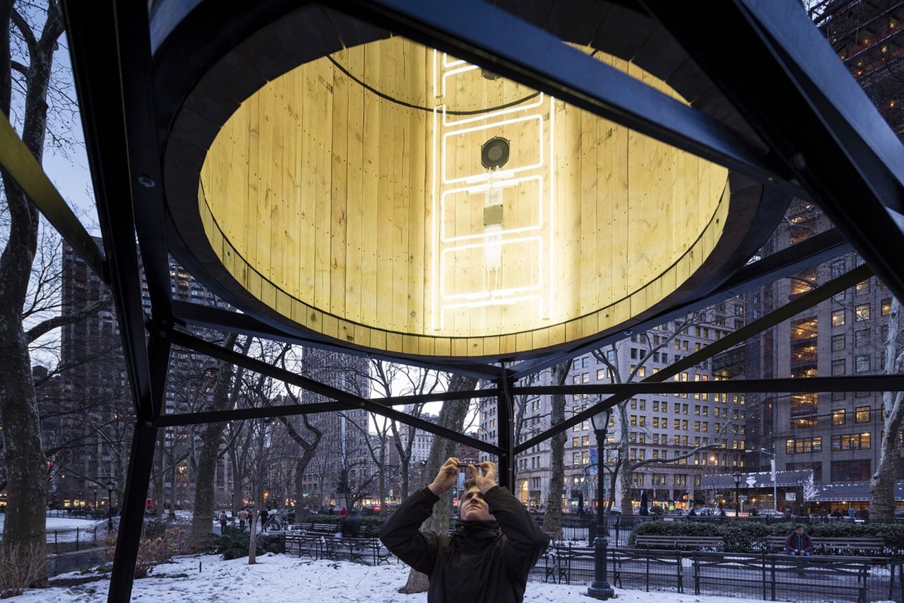 Installation view of Iván Navarro’s This Land Is Your Land in Madison Square Park (2014). Photo by James Ewing Photography, New York. Courtesy of Madison Square