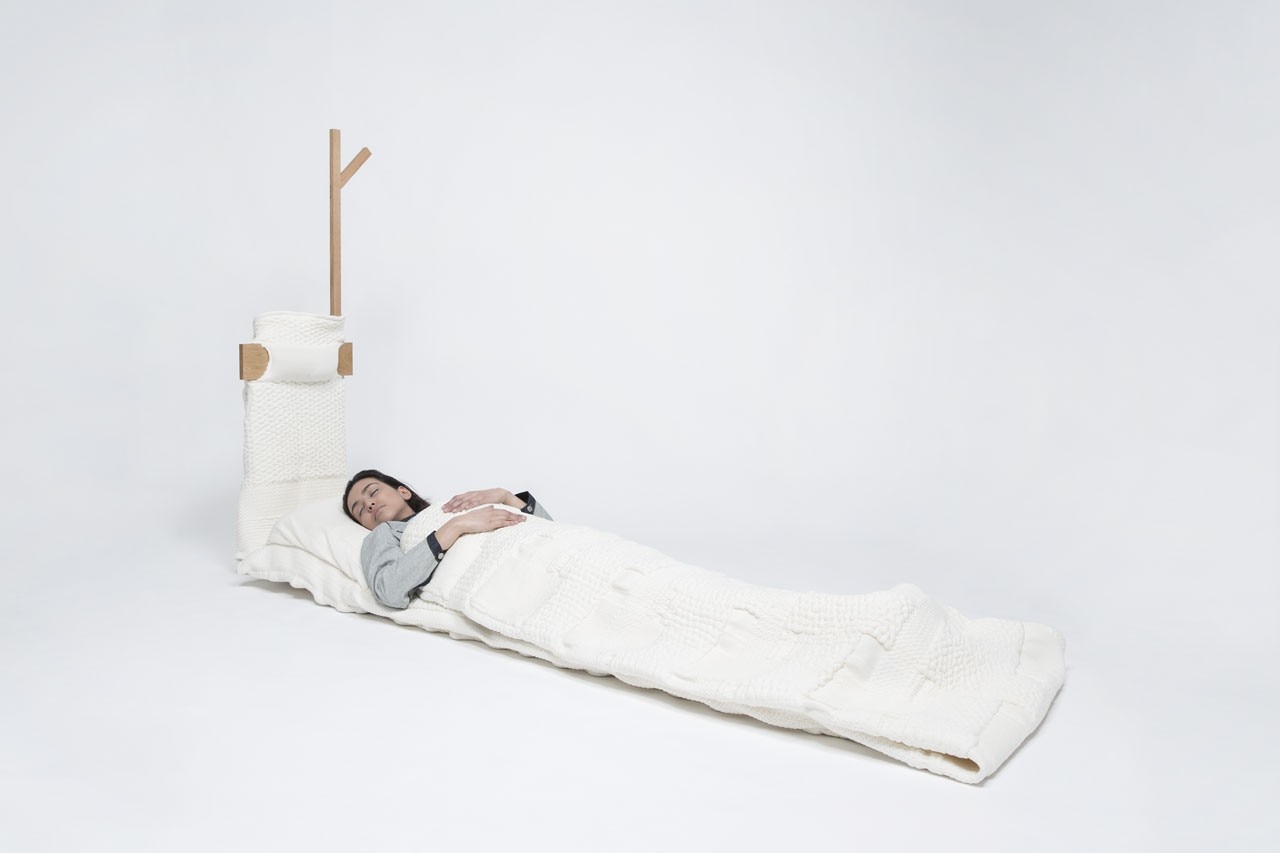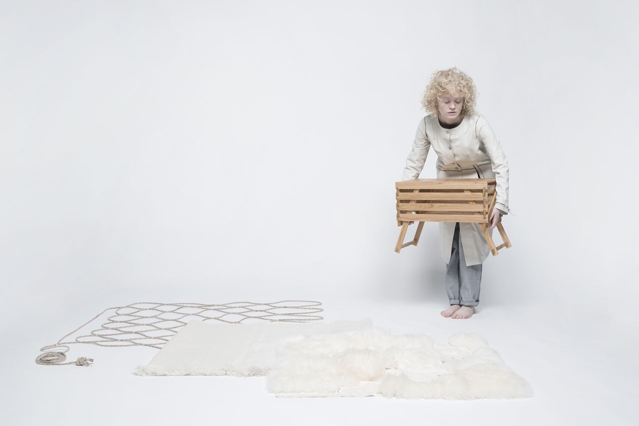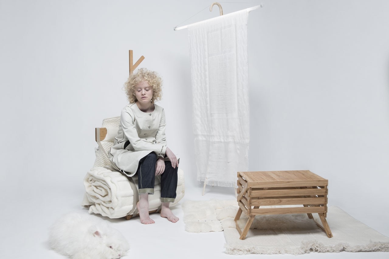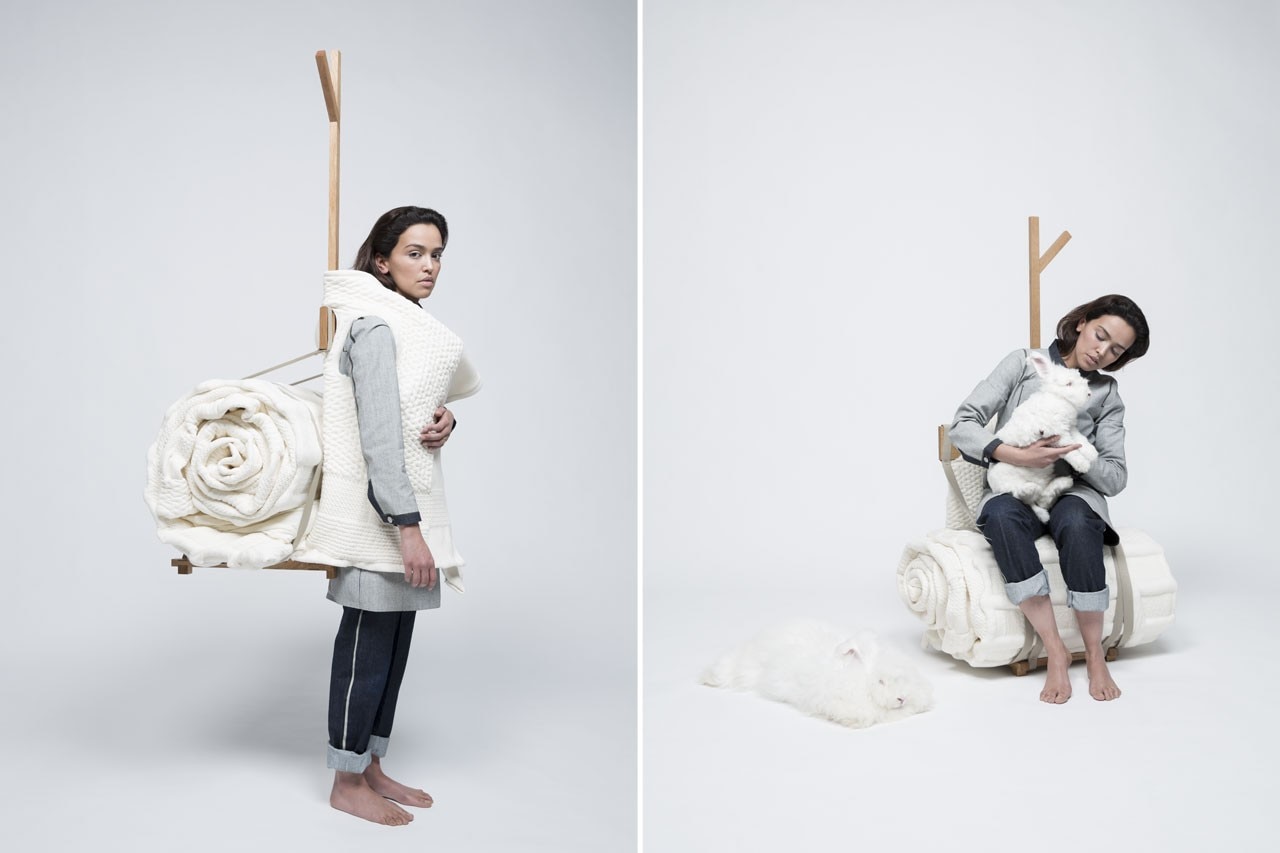 These domestic objects with a double function are based on harvesting fibers from animals. Textile is used for its basic properties: expandability, lightweightness and foldability.