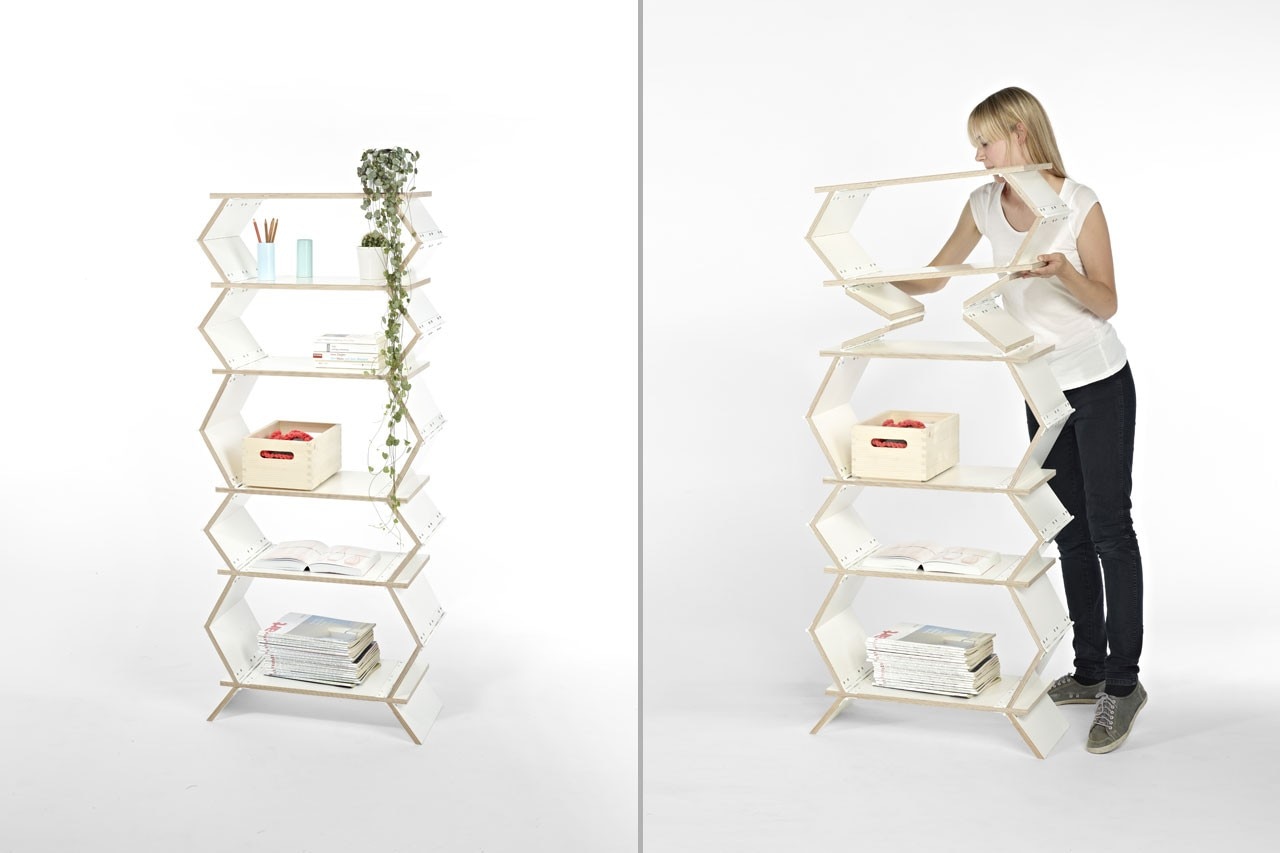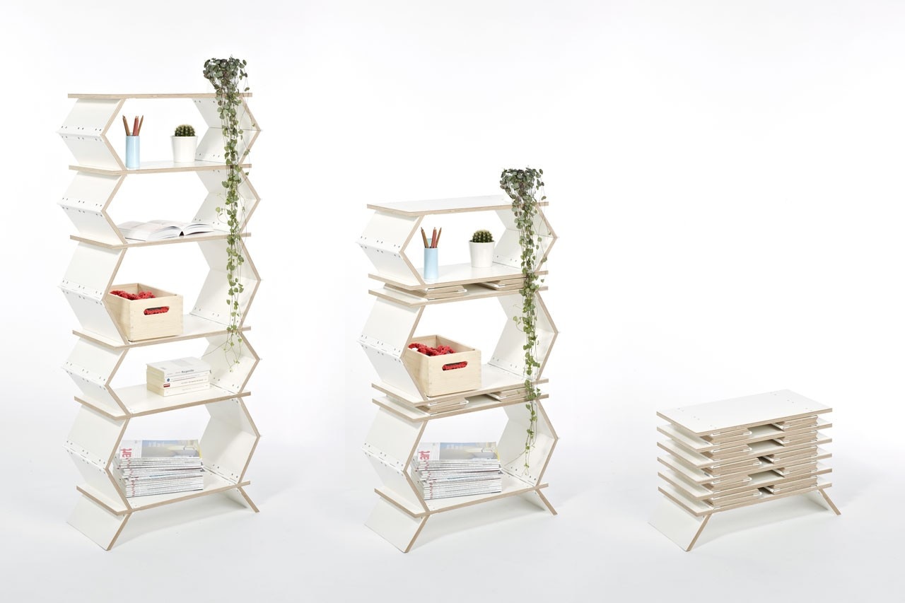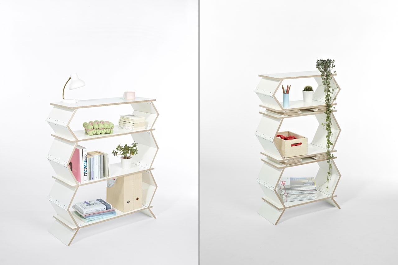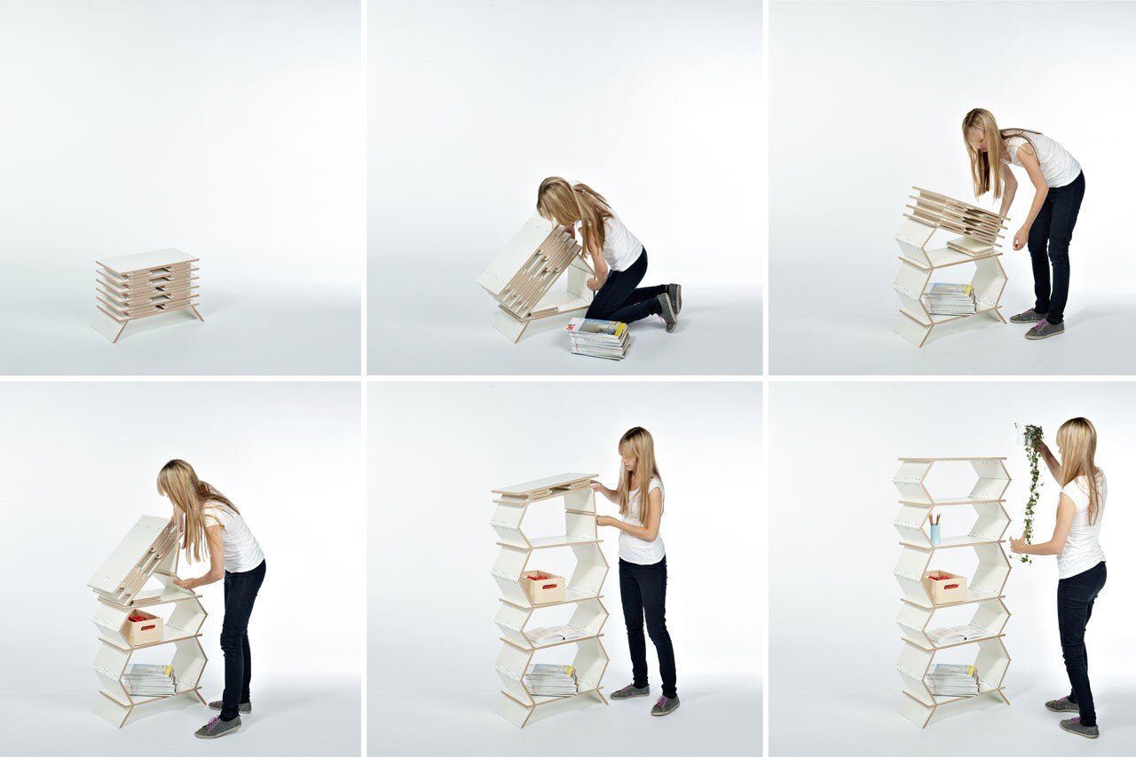 Despite having fewer and simpler production steps, a complex functional system is possible. The final height of the shelf is customisable, as some compartments can stay closed according to requirements.