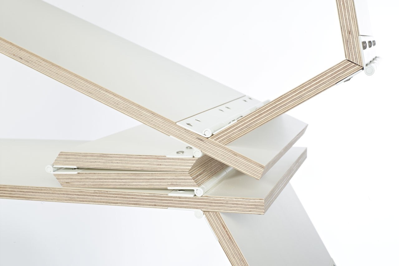The shelf Stockwerk, by young German designer Meike Harde, appears to negate its material properties, becoming a foldable object reminiscent of a compressible paper model.