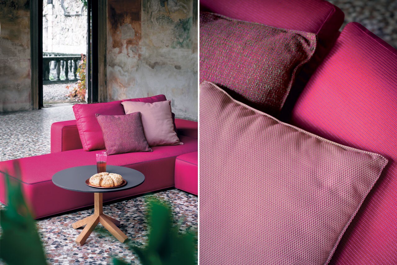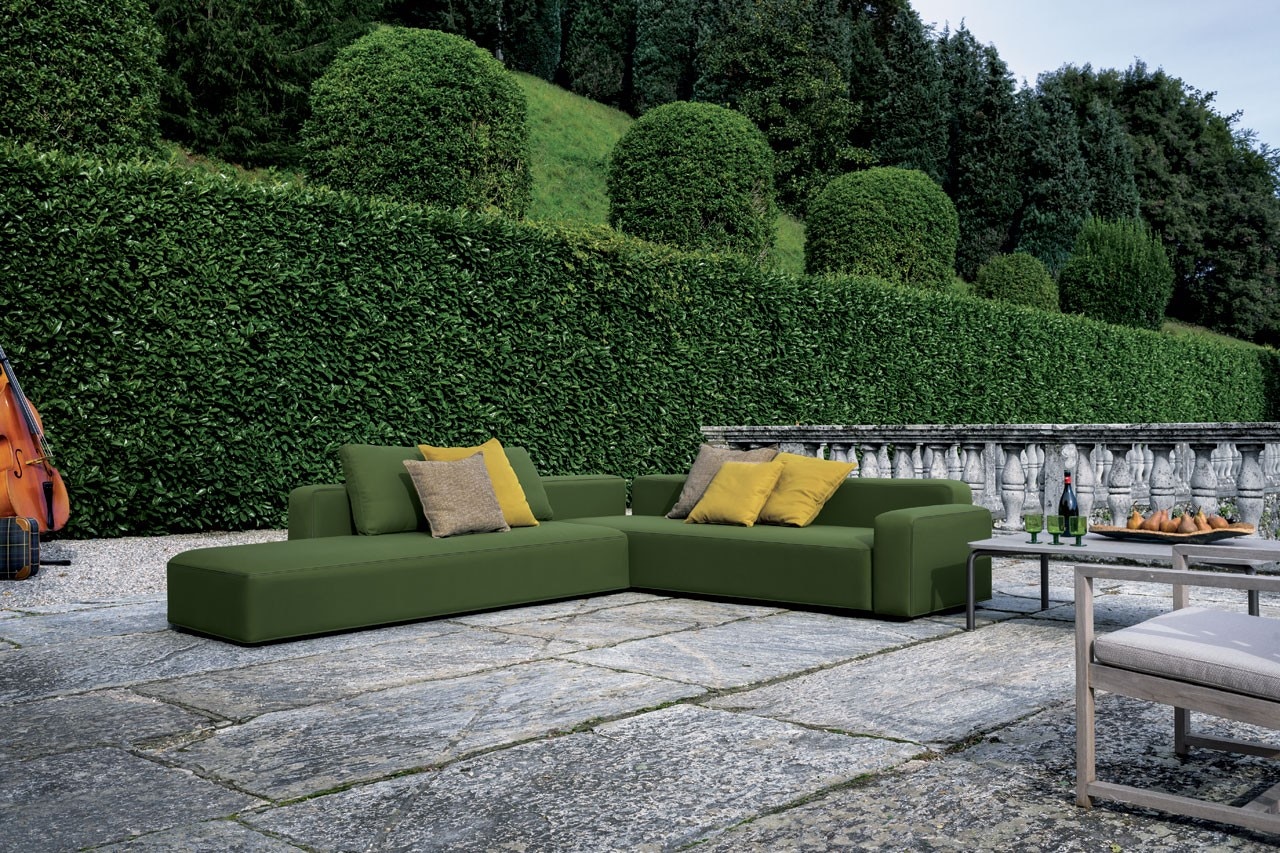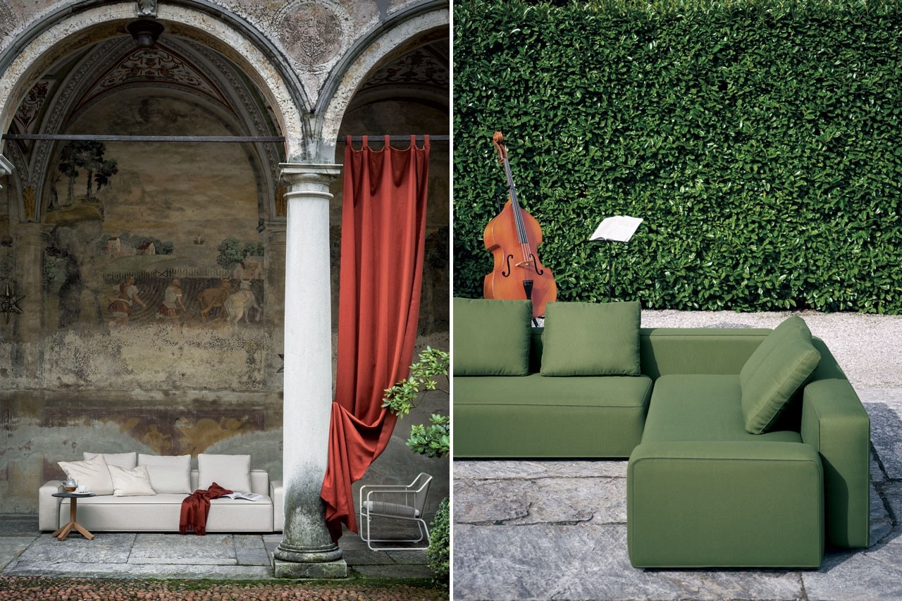 With Dandy collection, designed by Rodolfo Dordoni, Roda transfers outside the indoor fabric sofa.