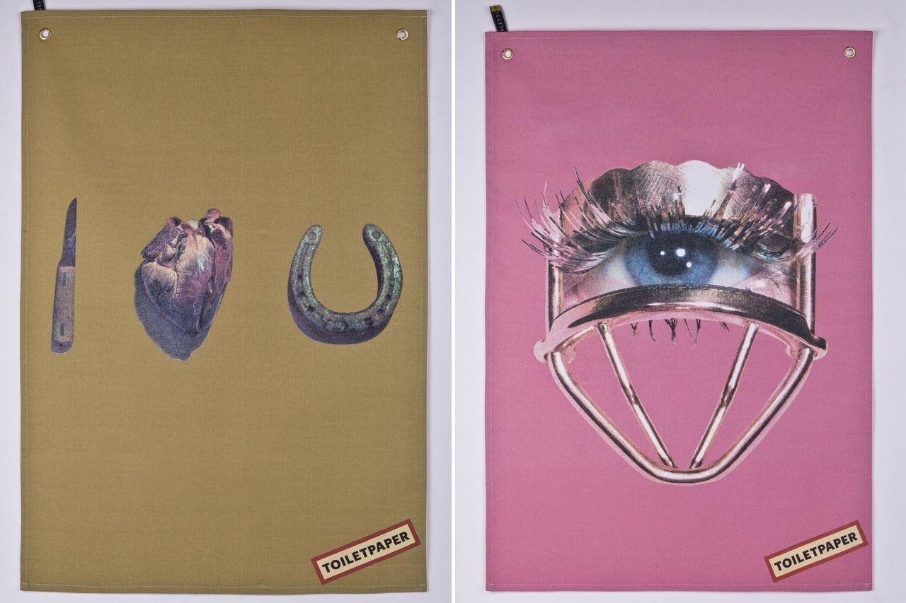 A selection of images from the magazine become the decorative motif of the Toiletpaper Seletti design collection: mugs and glasses are decorated with a kitchen plunger, a rampant horse, the severed fingers (already on display on Manhattan’s High Line billboard) and a pulp interpretation of the famous “I love you”; a fish full of precious gems and a table set with “unexpected” guests are the images towering over the tablecloths.
