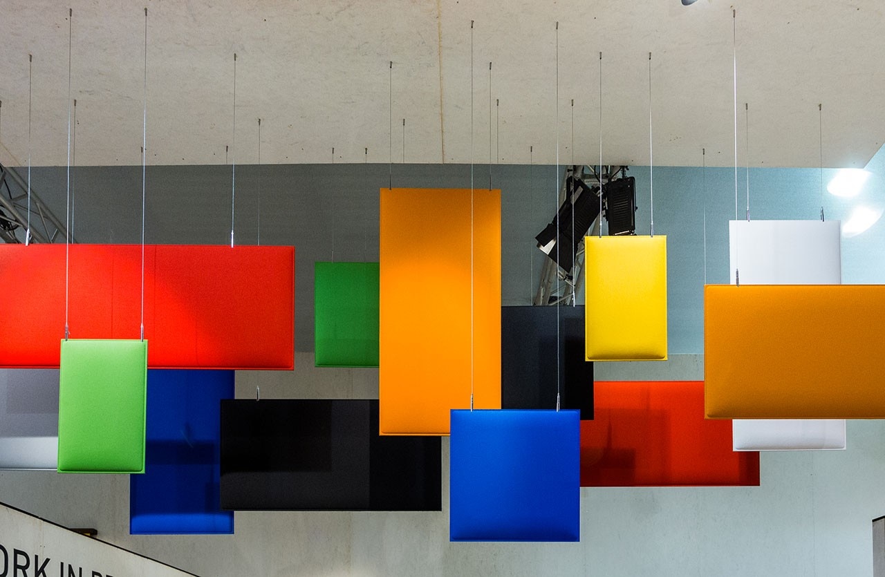 With designs by Marc Sadler and Philippe Nigro, Caimi continue to develop their soundproofed panels of variable density that feature patented Snowsound technology.