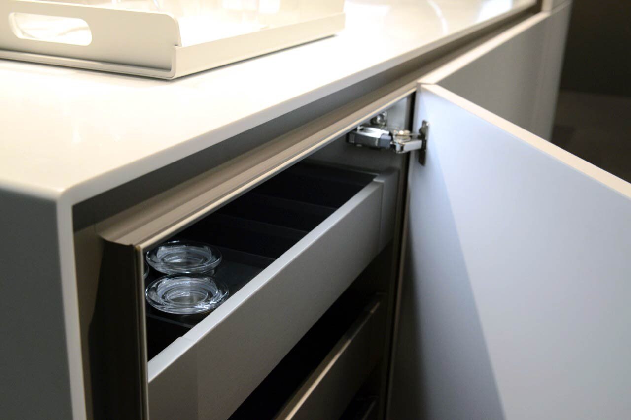 A kitchen with clean and simple forms, Elle is an experimental project for the identity of Snaidero.