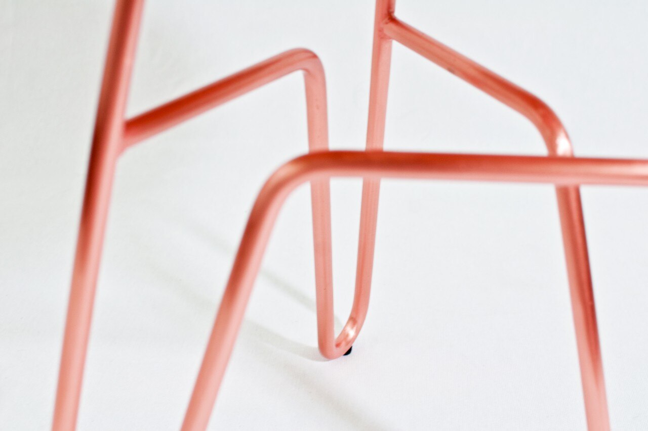 The structure is made of metal rod bent and powder coated. Donut is available in two different heights (high and low stool) and three color finishes: white, gray, copper.