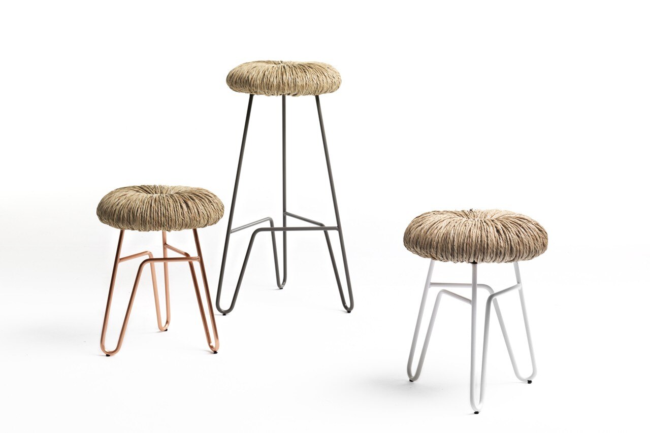 Young Italian designer Alessandra Baldereschi designed for MOGG the collection of stools Donut, stuffing with straw by hand with the marsh grass.