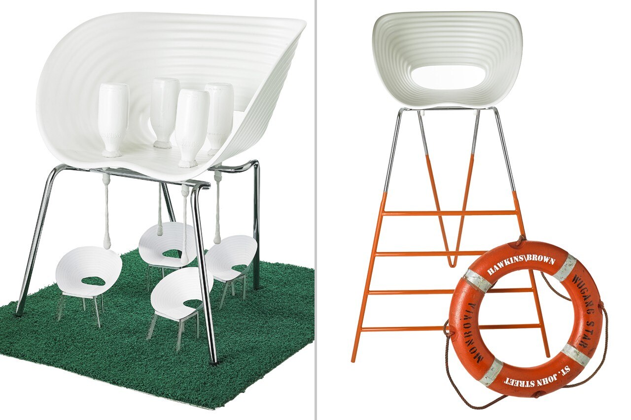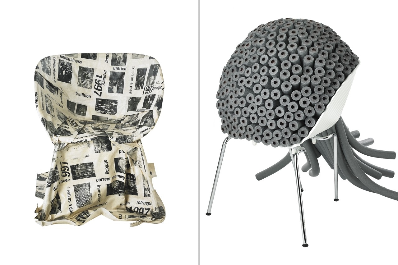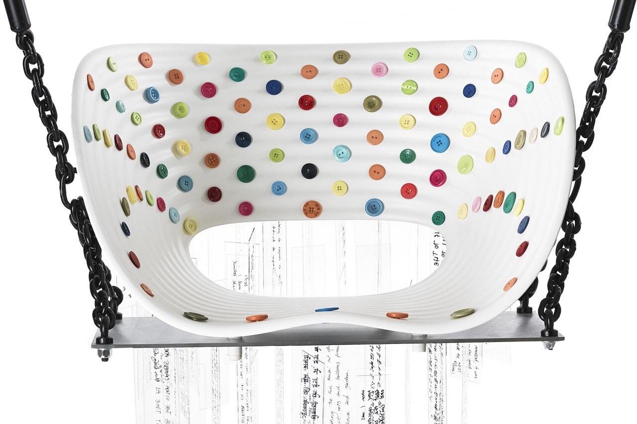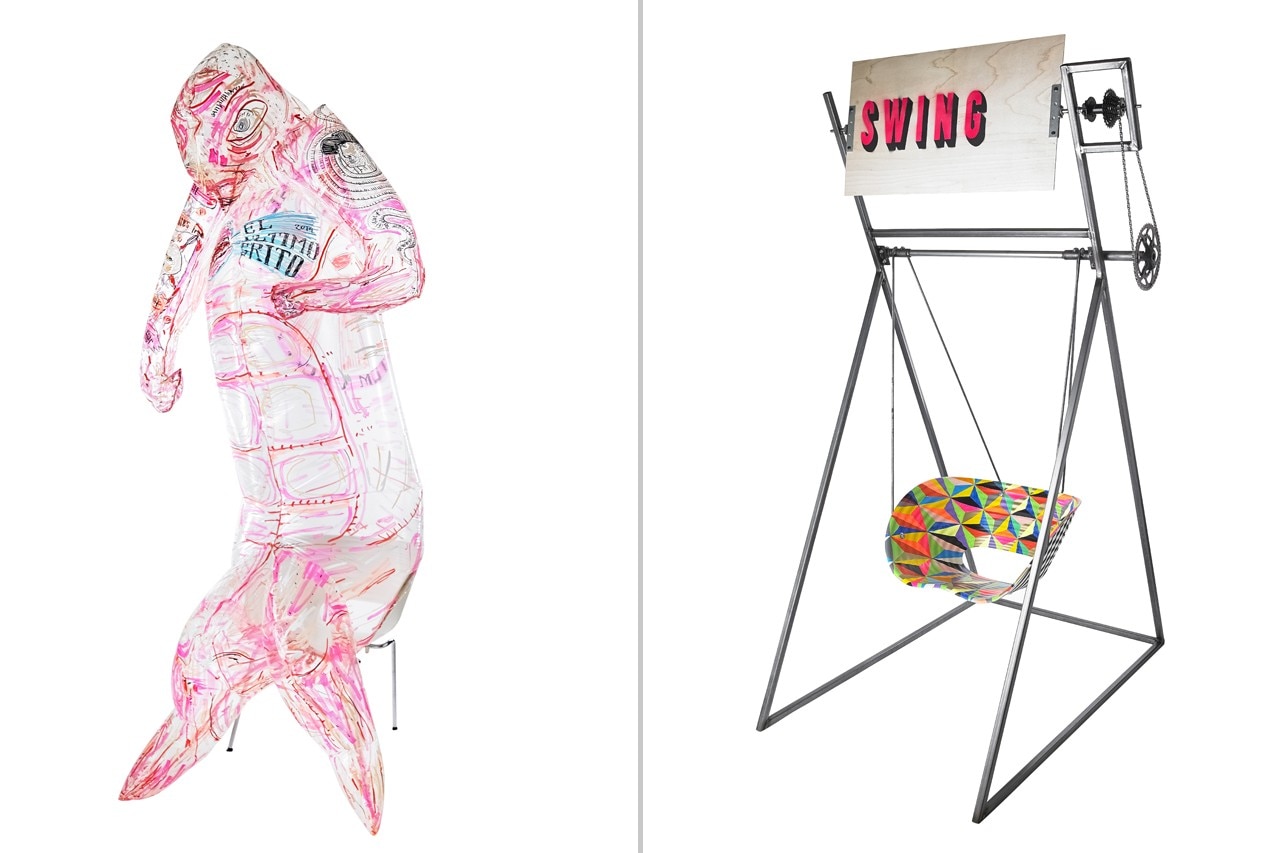 Left: El Ultimo Grito Studio, The Rise and Fall of the User. Right: Morag Myerscough & Luke Morgan, King of the Swingers